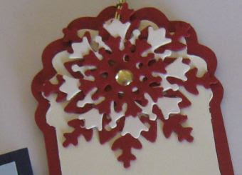 The simplicity of layering different sized snowflakes from the Northern Frost die, but Oh! so effective! Everyone who visits my craft room remarks on this one: